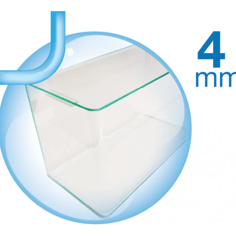 informations complémentaires : aquarium de 32 litres pour poissons d’eau froide et exotiques , doté de plots en silicone à installer sous la cuve avant mise en eau pour amortir l’appui et éviter le glissement , avec couvercle en verre qui permet la diffusion de l’éclairage et évite les éclaboussures , en verre d’épaisseur 4 mm , basse consommation avec un luminaire led 3.6w 15000k 230lm avec interrupteur tactile 3 positions : jour/bleu/off , filtre cascade de 280l/h (consommation environ 4w) comprenant un bloc de mousse pour stopper les impuretés et une cartouche de charbon actif et zéolite pour une épuration chimique de l’eau , dimensions de la cuve : l 50 x p 25 x h 30 cm , volume : 32l