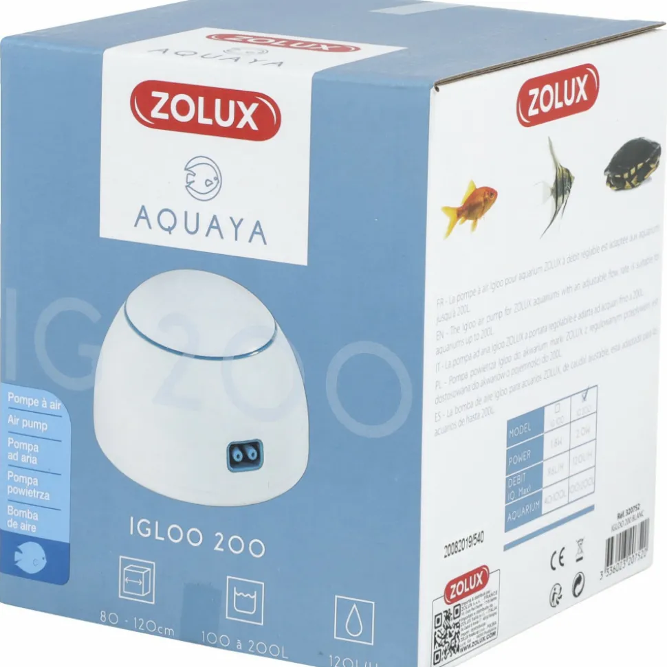 La pompe à air Igloo pour aquarium ZOLUX à un débit réglable est adaptée aux aquariums de 100 à 200 L.