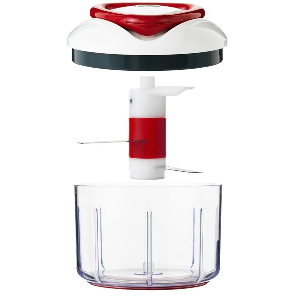 Le multi-hachoir Easy Pull Zyliss ZE910015 est un mixeur manuel doté d’un design breveté vous permettant de hacher vos ingrédients en toute simplicité et de façon uniforme. Cet ustensile deviendra vite indispensable pour hacher, mélanger et réduire en purée tous vos ingrédients en toute simplicité et sans avoir à brancher quoi que ce soit. Plus qu’un simple ustensile de cuisine, le multi-hachoir peut être utilisé pour préparer cheesecake, salsa, smoothies, cocktails, salades, glaces, viandes hachées, chapelure et soupes. Tirez entre 3 et 5 fois sur la poignée pour un hachage grossier et entre 8 et 10 fois pour un hachage plus fin. Les deux lames en plastique agissent comme un mécanisme de nettoyage en détachant les aliments des parois et en les faisant retomber dans la zone de découpe.Hachoir compact et polyvalent pour couper, hacher, mélanger des légumes, fruits, nois, herbes, pour faires des pestos, salsas ou marinades. Patentiertes Schweizer Klingensystem. Système de lames rotatives breveté Suisse. Système à corde avec retour automatique pour actionner les lames – le plus de rotations, le plus fins les résultats. Grand bol de 0.75l er des pieds anti-dérapants pour uen grande stabilité.